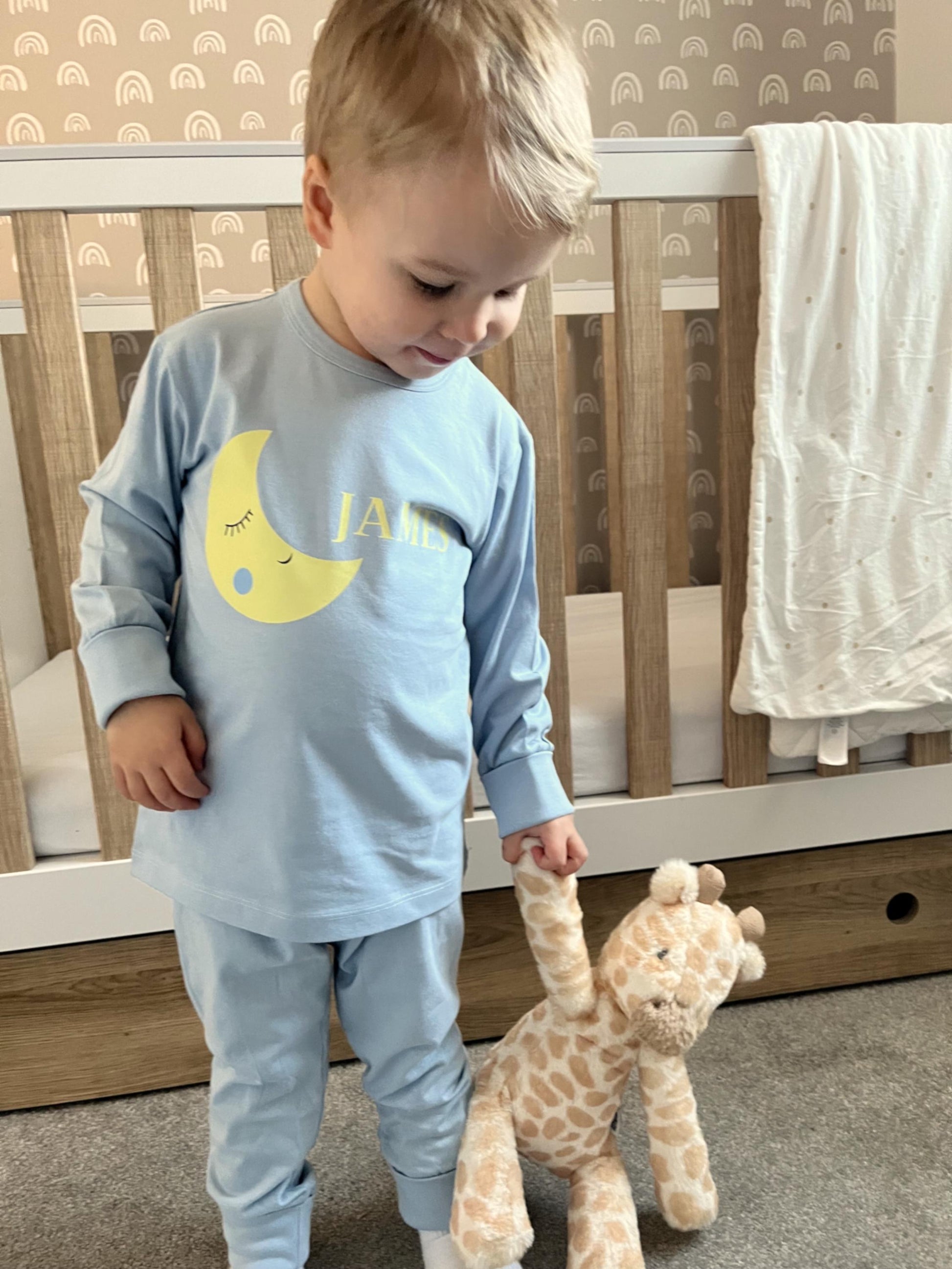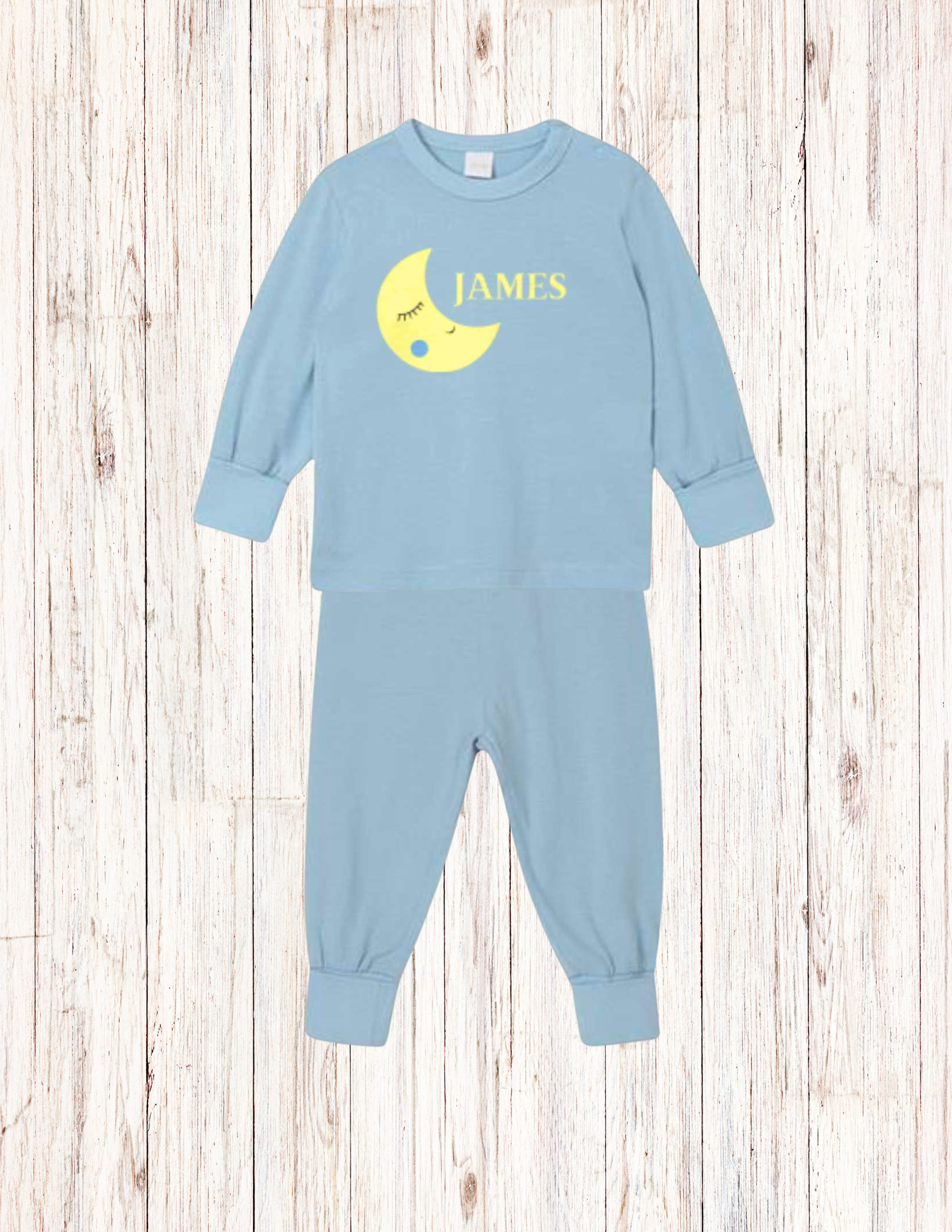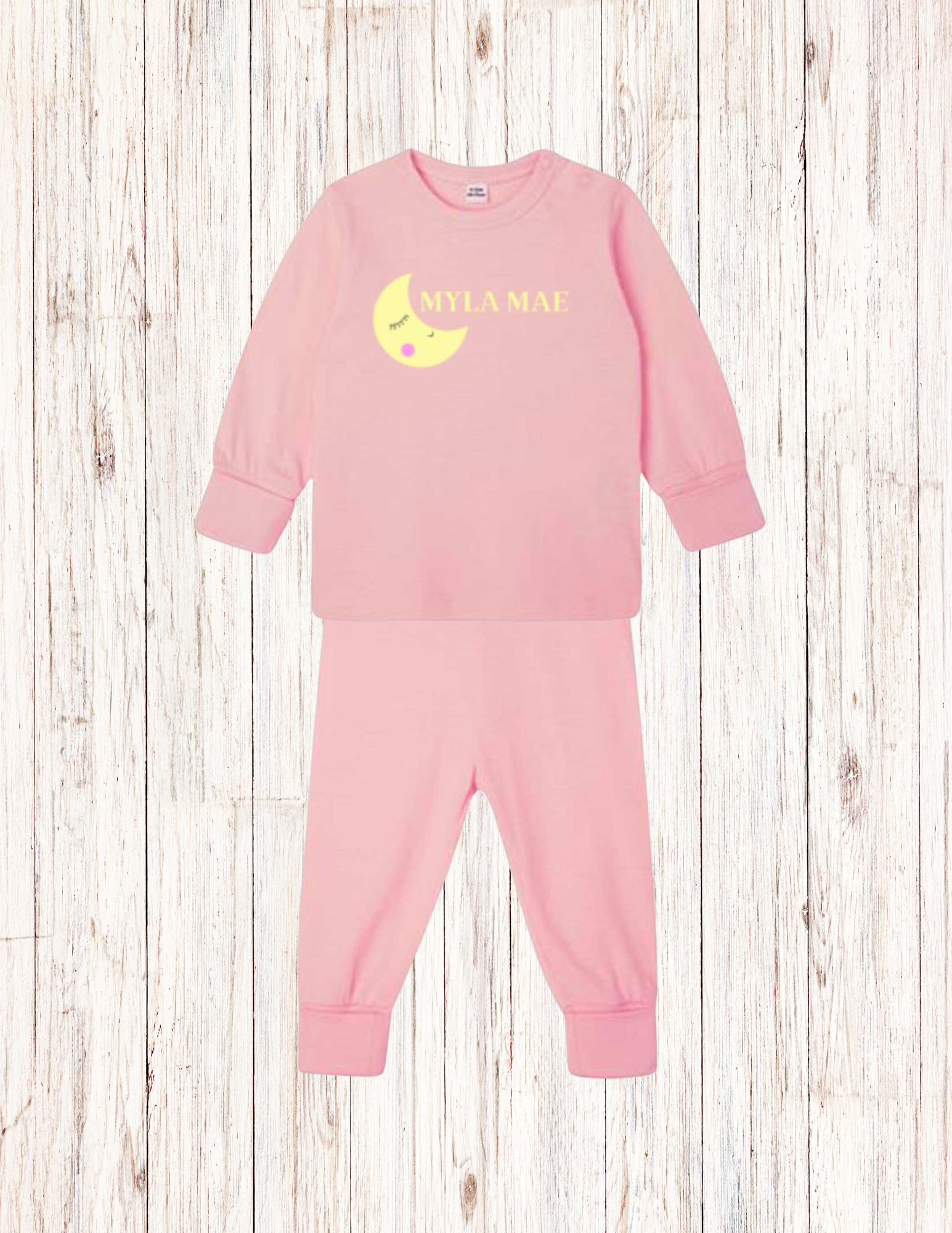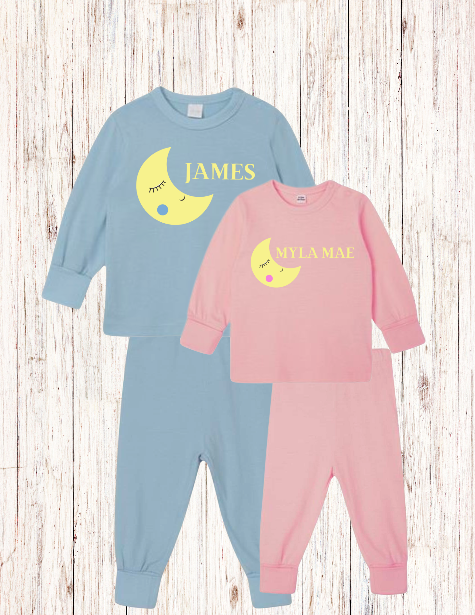 Baby Moon Personalised Pyjamas - Cute baby Pyjamas in pink or blue - Add your baby's name - Keepsake - Customised Baby Gift