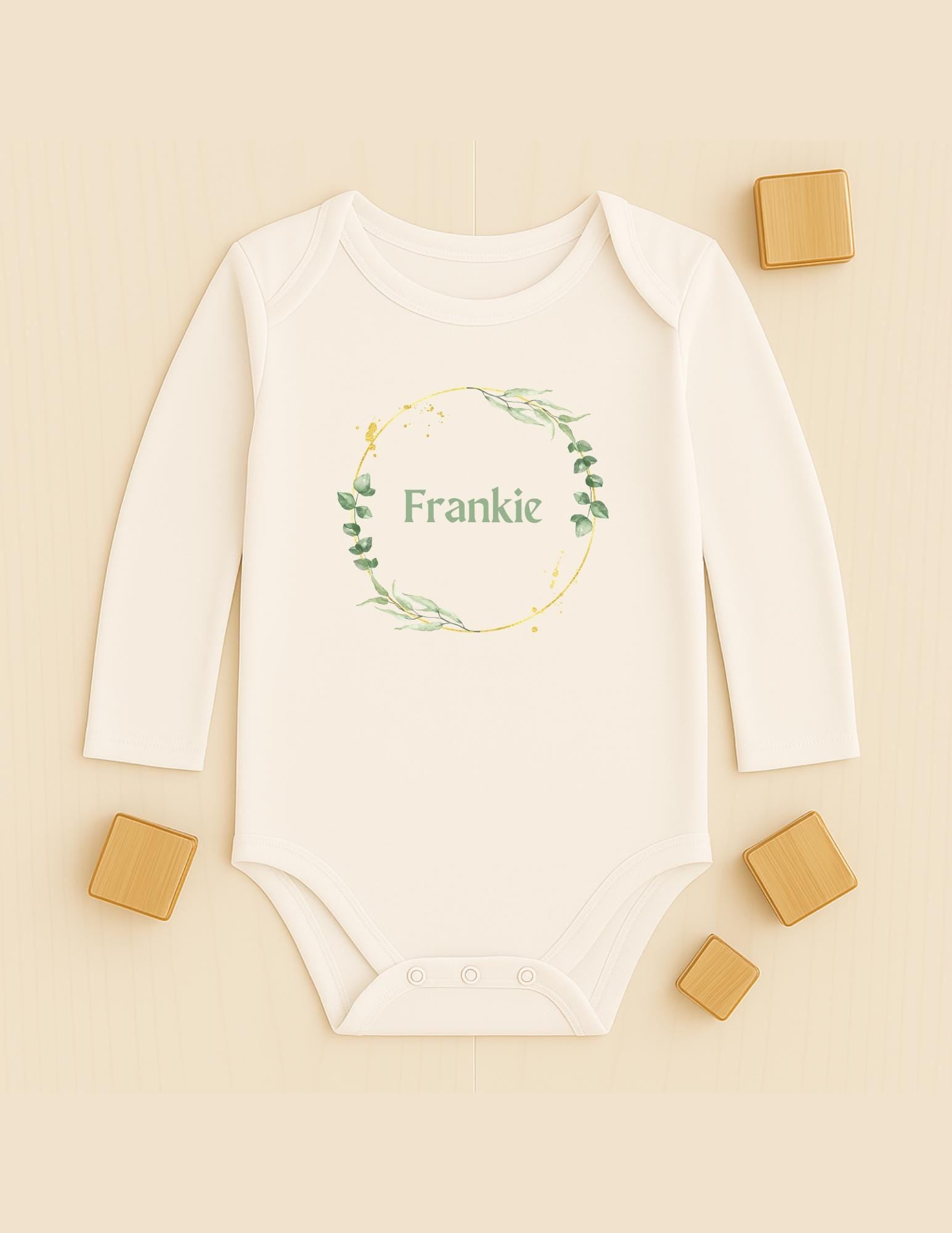Wrap your little one in both comfort and charm with our Personalised Baby Bodysuits. Made from gentle organic cotton, this bodysuit is perfect for delicate baby skin. Featuring your baby’s name beautifully showcased at the centre, encircled by an elegant design, it’s a timeless keepsake that’s as special as they are. With convenient snap closures for easy dressing and a snug fit for all-day cosiness, these bodysuits are ideal for gifting or celebrating your baby’s unique identity. Add a touch of sophistication and love to your little one’s wardrobe!