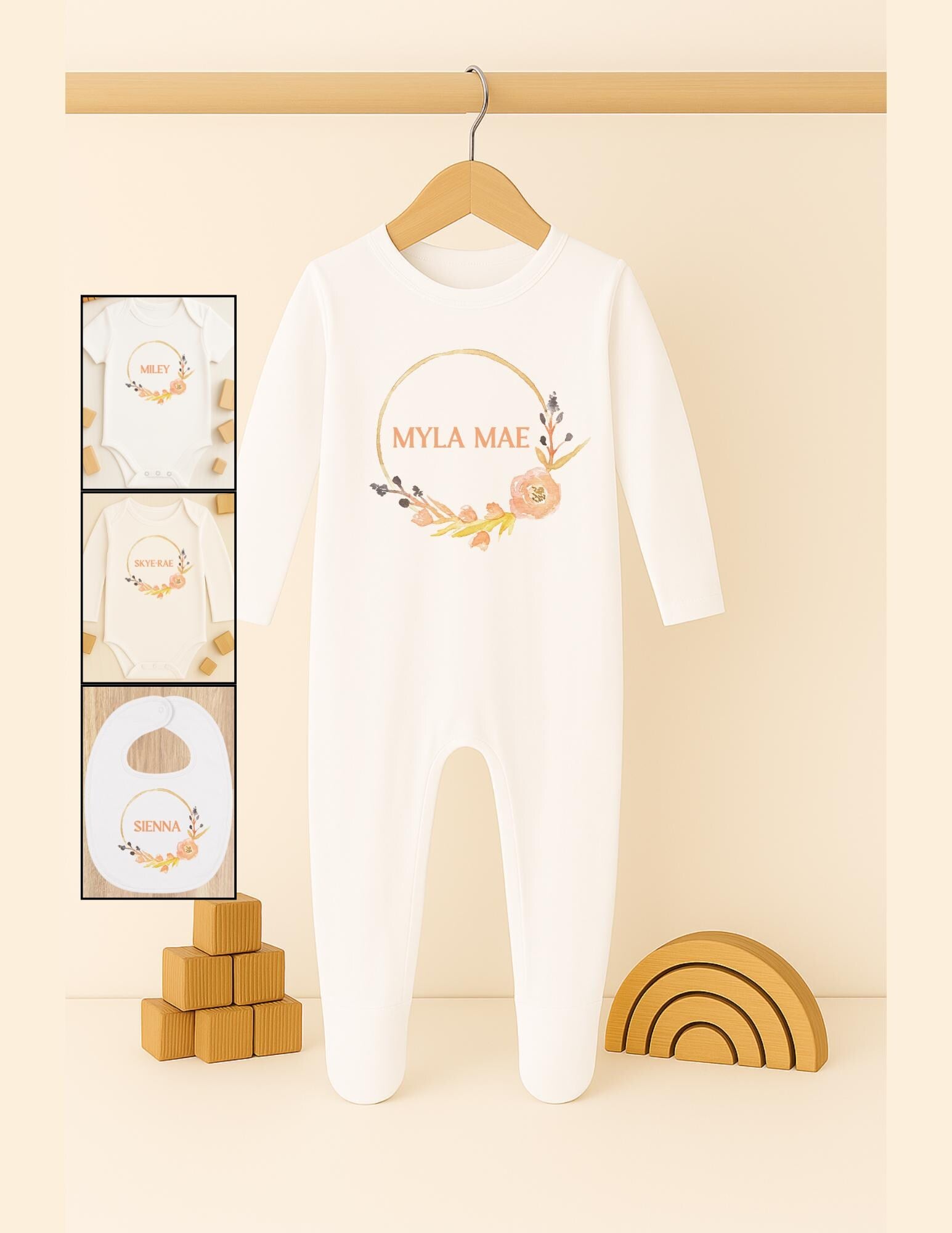 Personalised baby vest bodysuit or sleepsuit, Customisable baby gift, Present for baby girl