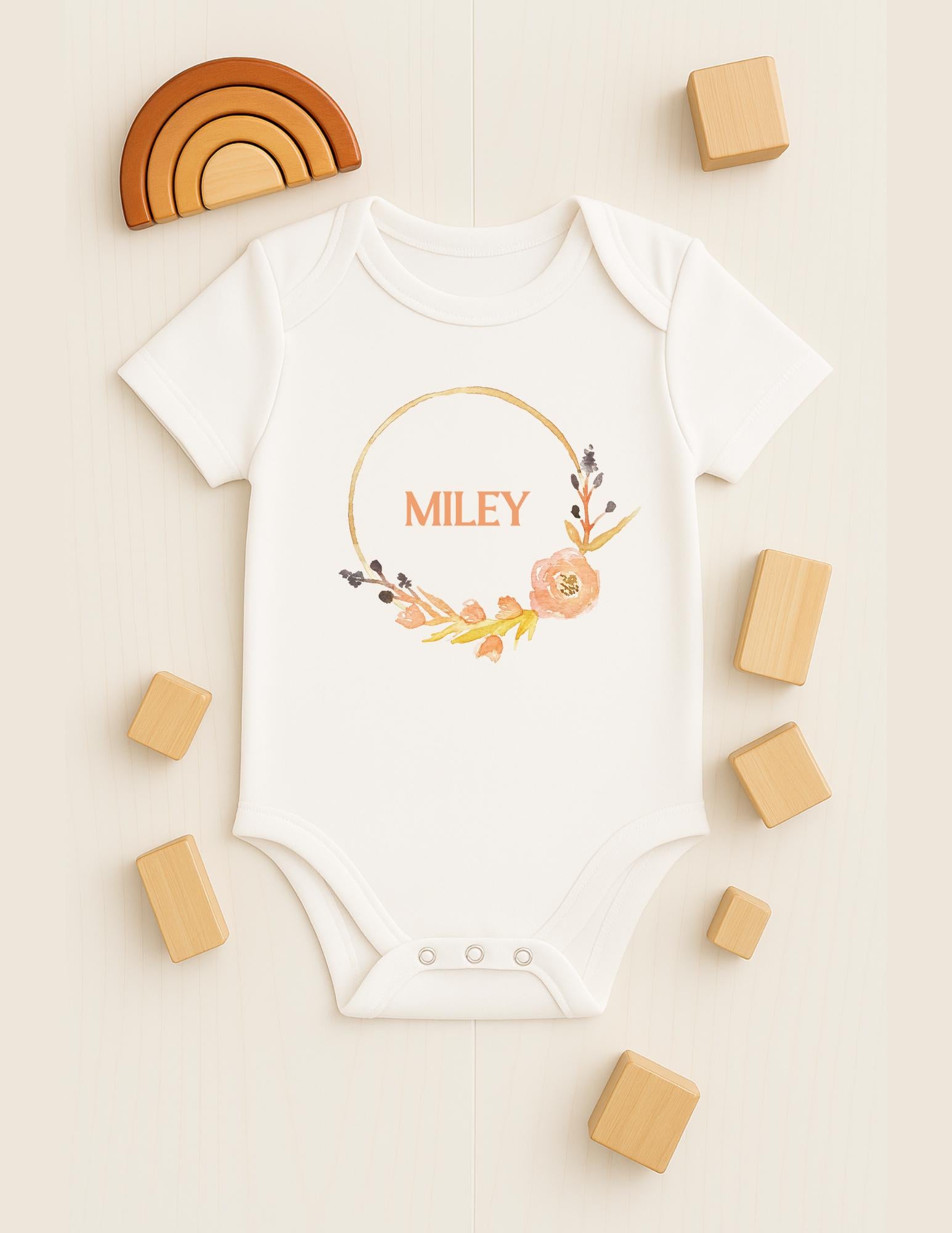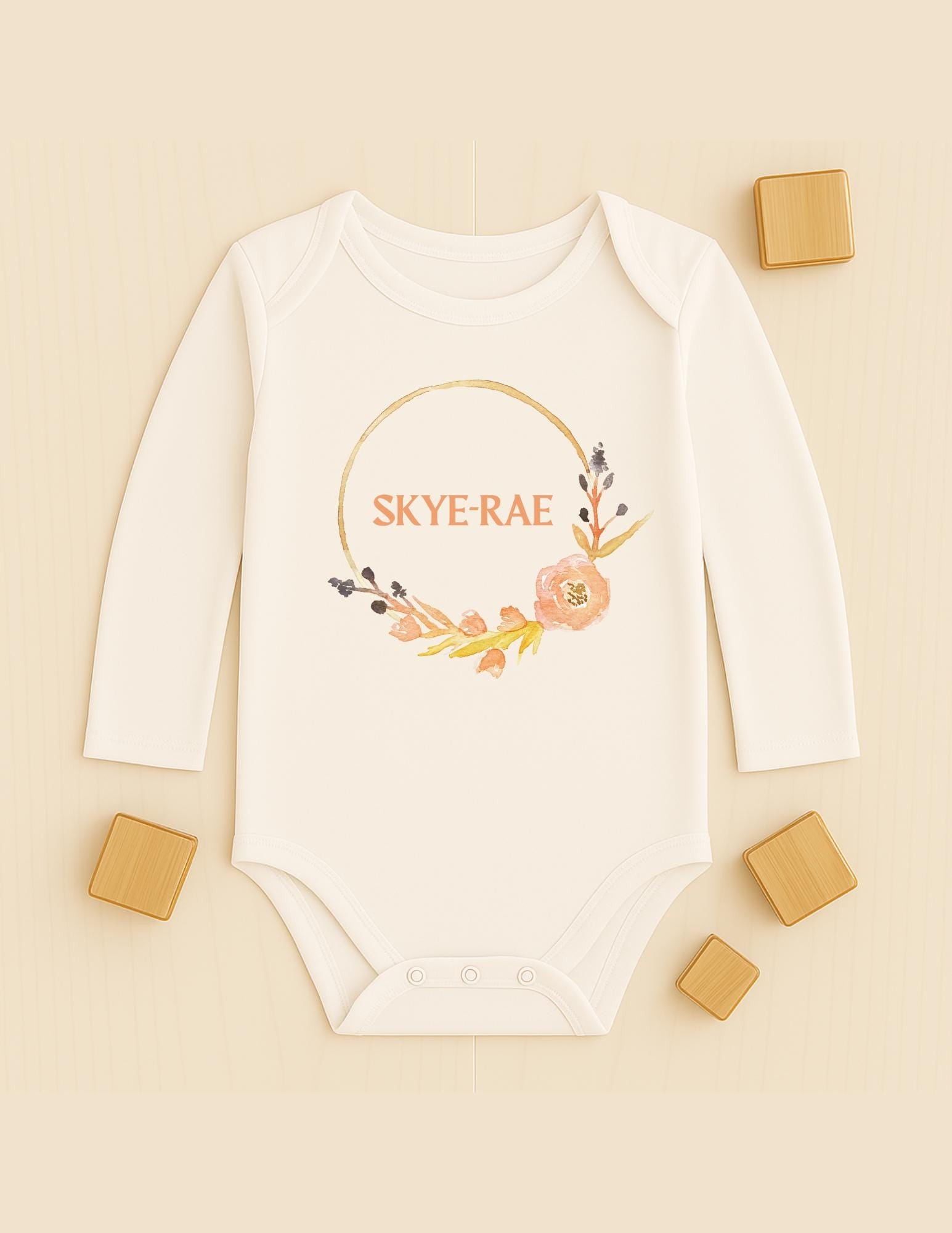 Wrap your little one in both comfort and charm with our Personalised Baby Bodysuits. Made from ultra-soft, gentle organic cotton, this bodysuit is perfect for delicate baby skin. Featuring your baby’s name beautifully showcased at the centre, encircled by an elegant design, it’s a timeless keepsake that’s as special as they are. With convenient snap closures for easy dressing and a snug fit for all-day cosiness, these bodysuits are ideal for gifting or celebrating your baby’s unique identity. Add a touch of sophistication and love to your little one’s wardrobe!