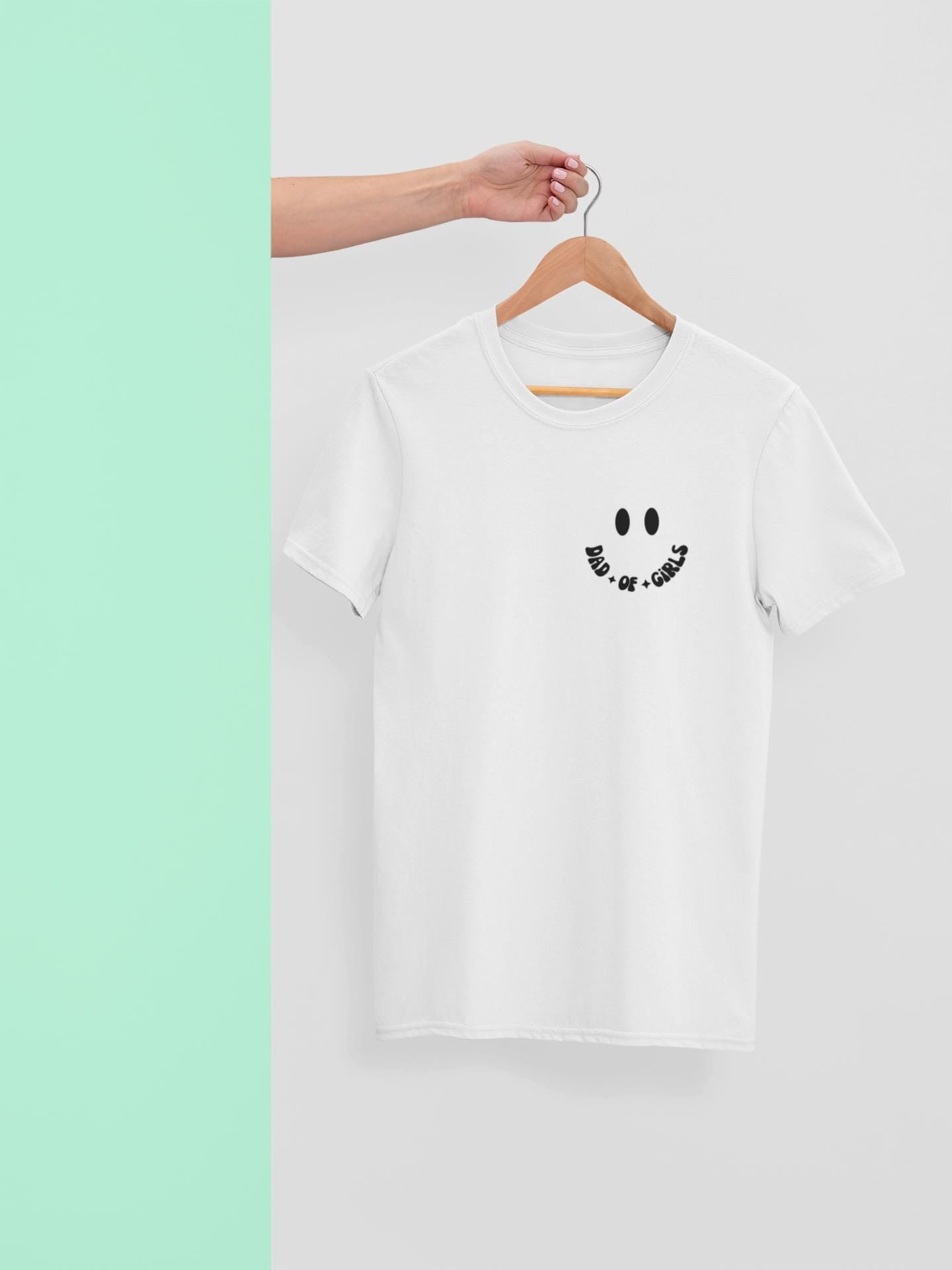 "Celebrate the ultimate girl dad with this charming and playful t-shirt! Designed to make him beam with pride, this comfy top features a small yet impactful logo on the left chest - a smiley face accompanied by the text, 'Dad of Girls.' The logo radiates humour, showcasing dad’s special bond and his role as their greatest cheerleader. Whether he's out and about, barbequing in the garden, or just relaxing at home, this tee is a stylish and meaningful way for him to wear his dad badge with pride. Perfect for Father’s Day, birthdays, or just because. You'll be giving him more than a gift; you'll be giving him a reason to smile all day!